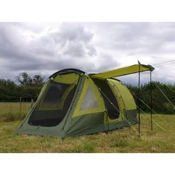 Two awnings (storage space between the bedroom and the flysheet) 60 cm deep that can each hold a 50 to 70 litre rucksack, mountain equipment as well as a pair of hiking shoes.