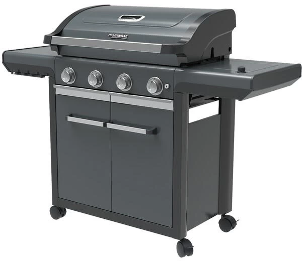 Cook up a feast for family and friends with the 4 Series Premium S gas barbecue. Featuring 4 efficient and high-performance stainless steel burners with our efficient Blue Flame Power System that ensures significantly less flare ups by design and keeps your food nice and juicy. Together with a large, enamelled cooking surface this barbecue is perfect for preparing a wide range of al fresco meals. The powerful side burner can be used to prepare accompaniments to the grilled food, cooking up a full feast with ease. The Campingaz Culinary Modular System provides keen grillers with even greater cooking versatility. Cleaning is quick and hassle-free thanks to the Campingaz InstaClean Aqua System. Electric ignition offers convenient lighting with batteries are included. Supports up to 13kg gas bottles within a partly enclosed trolley with doors. Swivel castors with brakes offer convenient mobility and manoeuvrability. Impaired storage solution with Campingaz Push2Fold folding side tables. Integrated utensil hooks for easy access and convenient storage of grilling accessories. 5 year warranty on the Campingaz Blue Flame Power System and cooking surfaces.