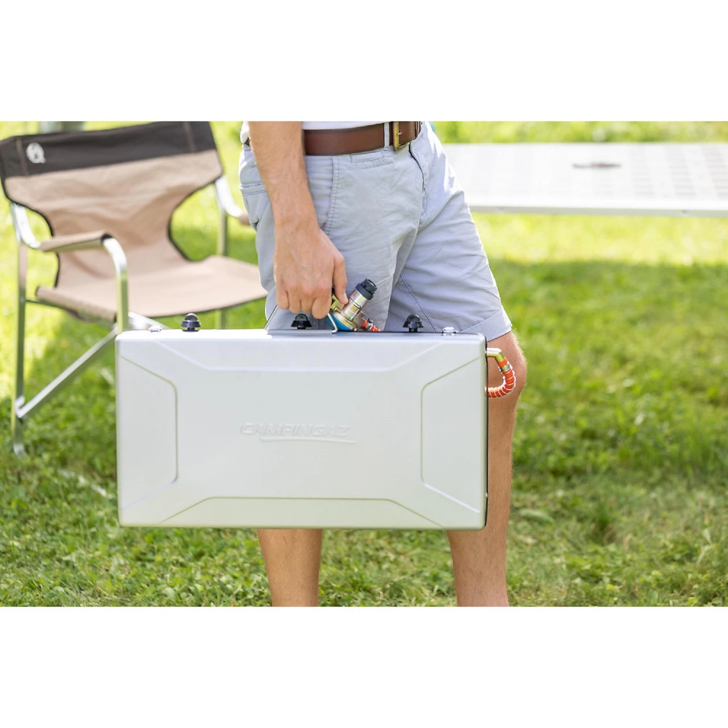 An essential for any family camping trip, this multi-functional Camping Chef Folding CV has 2 powerful and efficient burners plus an additional downward grill.The Camping Chef Folding CV operates off Campingaz CV 470 Plus cartridges for